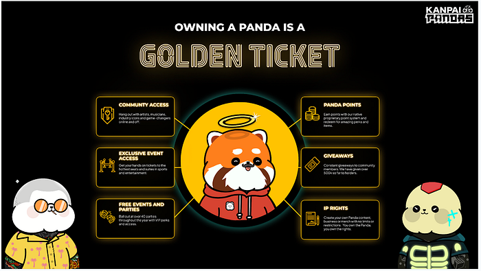 Launched in April of 2022, the Kanpai Pandas are all about real-life experiences, where we’re combining the best of Web2 (IRL) & Web3 to create a unique NFT use case never seen before.